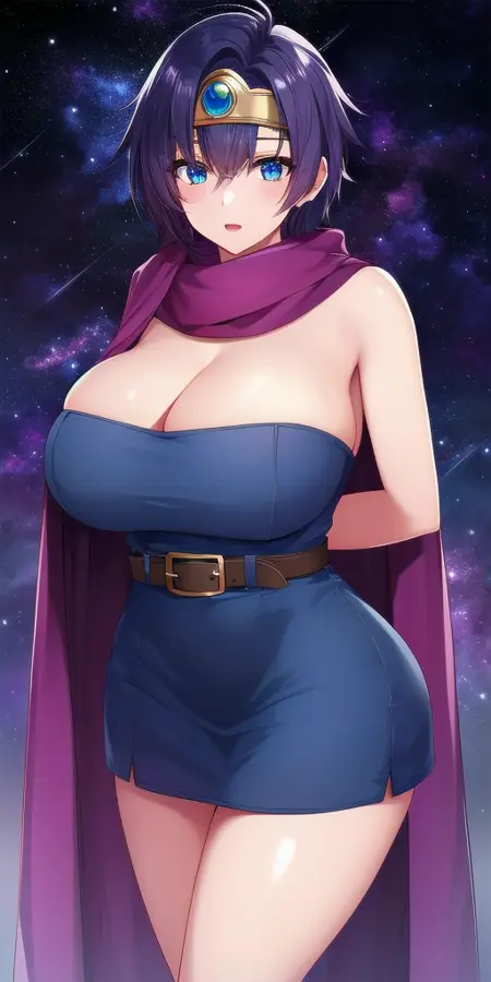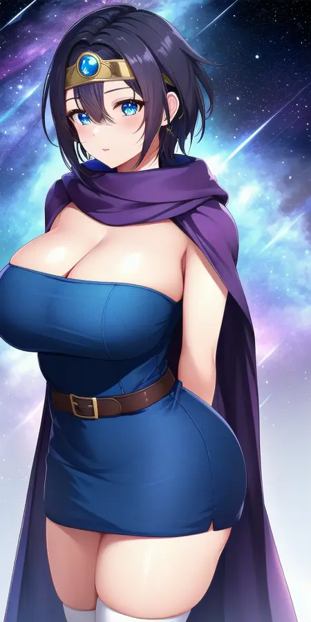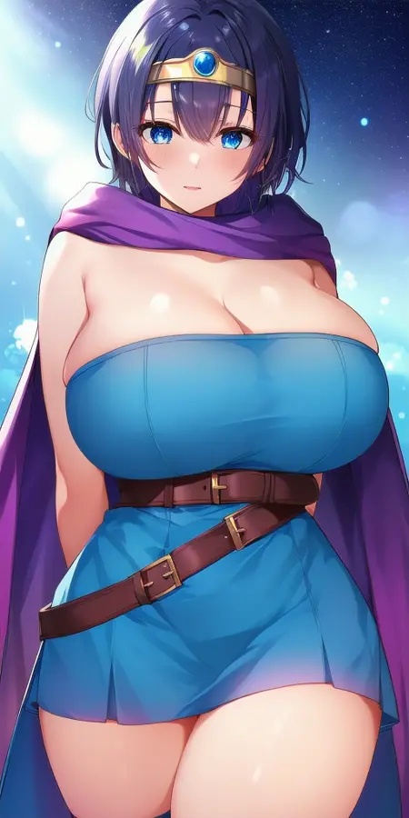 要获得她作为Roshiman的完整装扮,请使用:blue_strapless_microdress_thighs_zettai_ryouiki, cape, belt, circlet。