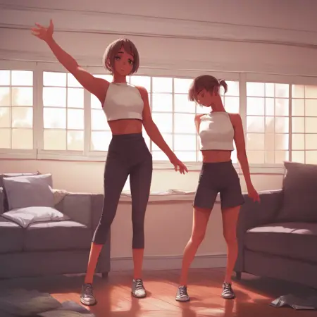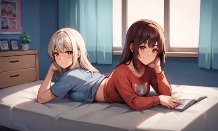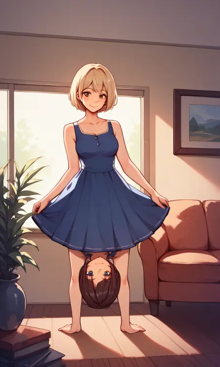 약간 학습이 부족해 보입니다. 더 나아보이려면 얼굴 수정이 필요할 수 있습니다. 바닥에 누워 있는 자세에는 '2girls'를 사용하면 더 잘 작동하며, 서 있는 자세에는 뒤집힌 상태로 사용하는 것이 좋습니다. 네 발로 서 있는 자세도, 두 소녀가 바닥에 서 있는 자세에 잘 맞습니다.