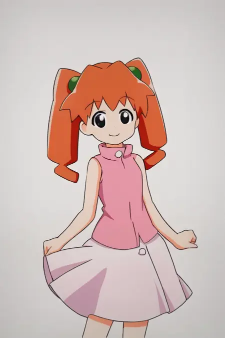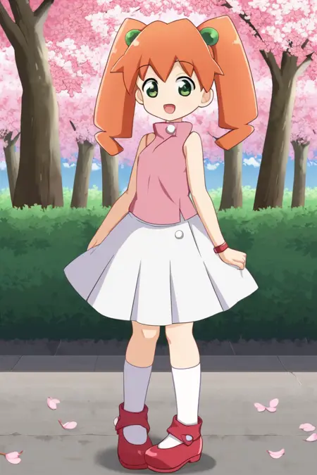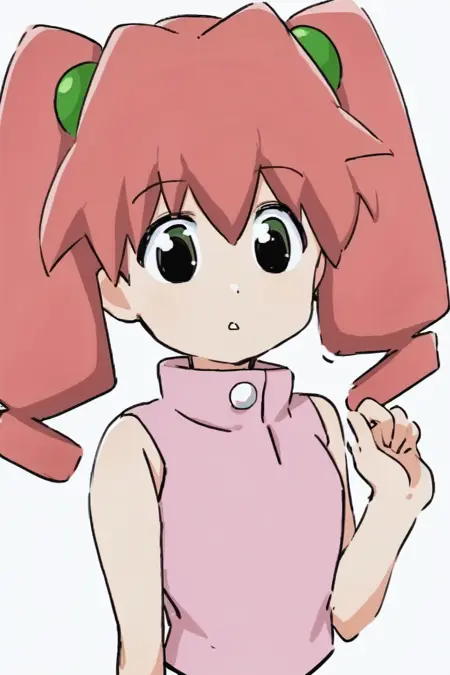 karinjunmai, pink sleeveless shirt, orange hair, white skirt