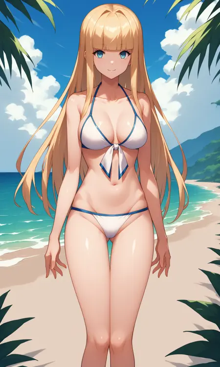 외모 태그: calca1bessarez, blonde_hair, (absurdly_long_hair 또는 very_long_hair), blunt_bangs, long_sidelocks, blue_eyes, blunt_bangs