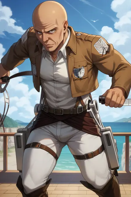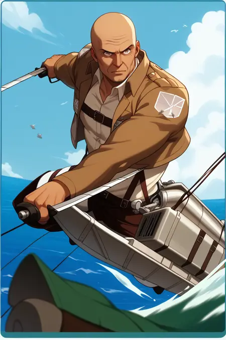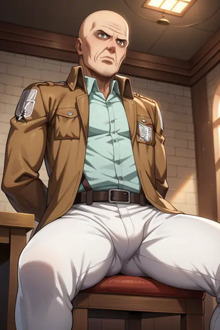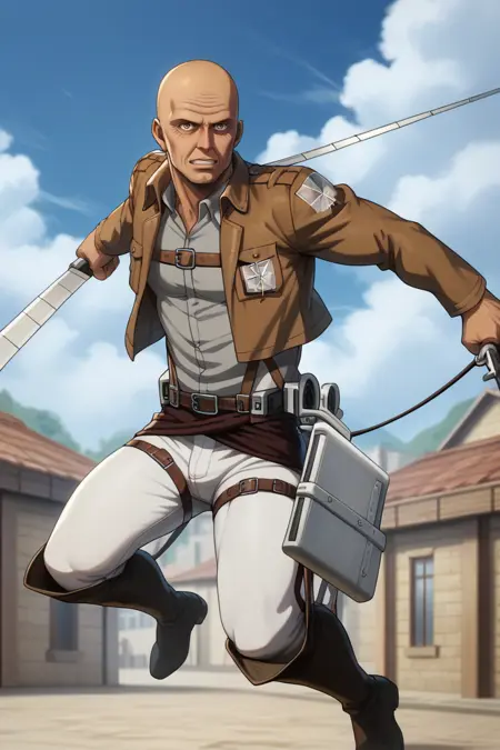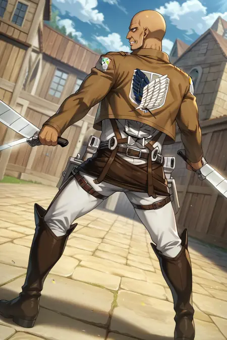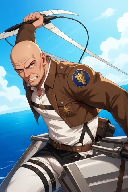 애니메이션캐릭터baradaddyhandsomemuscular maleshingeki no kyojinattack on titanbrown eyesanime charactermalemanshort hairbeardbrown hairsoldiercharactersbaldmilitary uniformteachermature malemature manhunkdilfmale charactermuscular manstubblesgoateethree-dimensional maneuver gearathletic bodymilitary coatkeith sadies