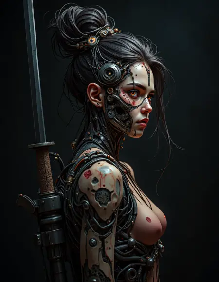 예를 들어, 기계화된 혈관과 근육은 인체의 생리 구조를 기계로 대체합니다. 따라서 저는 이 LoRA를 애니메이션 이미지로 학습시켰으며, 일부 리얼리스틱한 스타일에도 잘 맞춥니다.