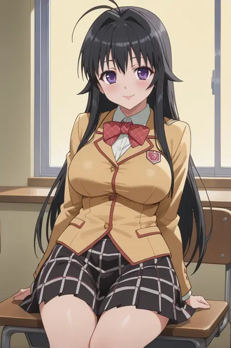 1girl, minamoto chizuru, kanokon, purple eyes, black hair, long hair, large breasts,