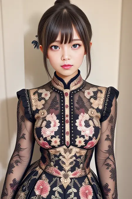 注意:整体来看,服装尚可,但女孩的脸部不太满意。想再练一次,算了。(Flux)
