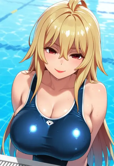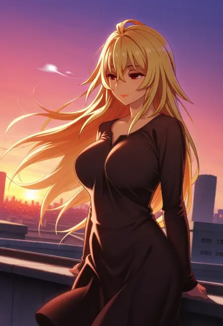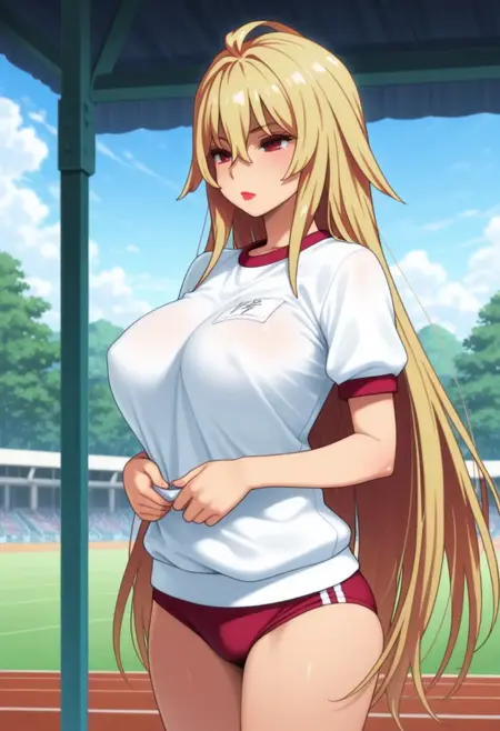 Shikishima Mirei, 빨간 눈, 금발, 긴 머리, 큰 가슴, 립스틱, ahoge,