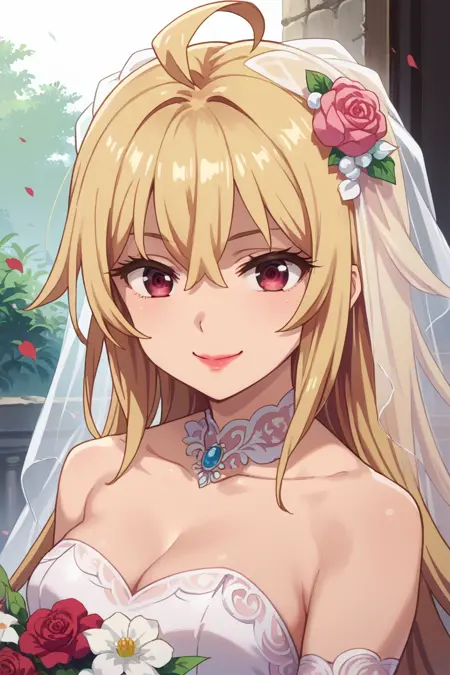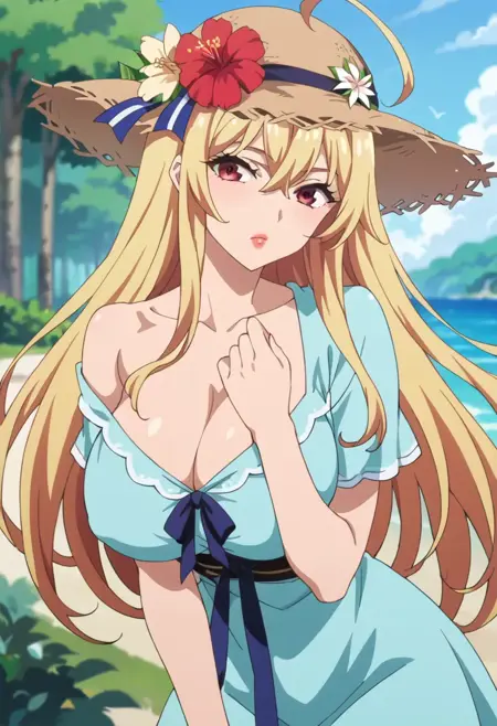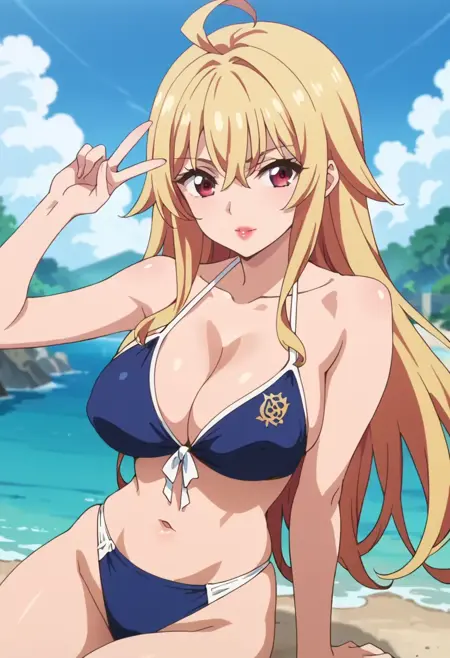 Shikishima Mirei, 빨간 눈, 금발, 긴 머리, 큰 가슴, 립스틱, ahoge,