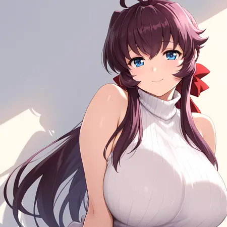 활성화 태그: "yuzuki, 갈색 머리, 긴 머리, 앞머리, 자주색 눈, 매우 큰 가슴"