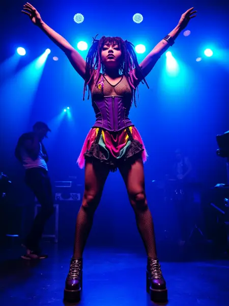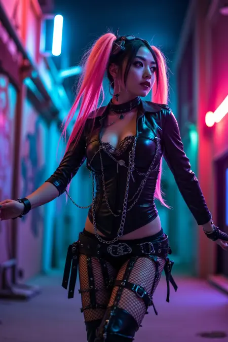 산업 & 사이버고트 소녀 플럭스는 산업적, 사이버고트, 그리고 조금의 펑크 록 미학을 결합하여 스타일, 패션, 섹슈얼리티를 융합해 이 테마들에서 놀랍고 독특한 룩을 창조합니다. 이는 즐겁고 미래지향적이며 섹시한 분위기를 자아냅니다. 이 LoRA를 사용해 귀하의 창작물에 산업적 및 사이버고틱 스타일을 더하고, 오랫동안 꿈꿔왔던 꿈같은 산업 사이버고트 소녀를 현실로 구현하세요! 이 아트워크는 각 작품마다 사나우면서도 눈길을 끄는, 과격한 산업 & 사이버고트 스타일의 다양한 의상과 룩을 포착합니다. 이 스타일은 섹스, 음악, 록 앤 롤의 시각적 언어에 기반합니다.