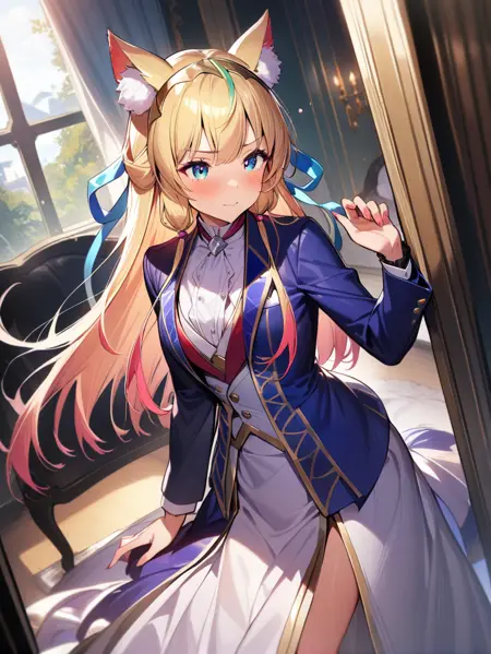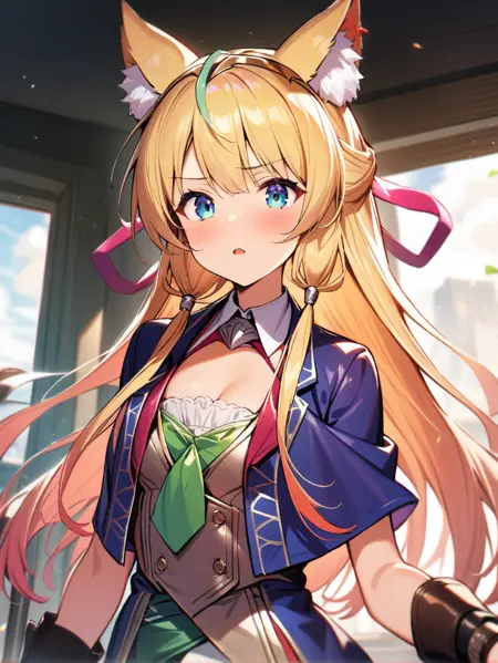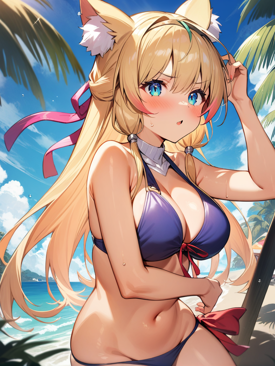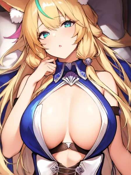 prompt:mistolina(sv),animal ears,navel cutout,navel,clothing cutout,blonde hair,