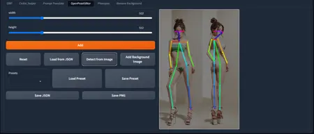 OpenPoseEditor. This module allows you to create skeletons for subsequent image creation using OpenPose ControlNet. You can also create a skeleton from an existing image.