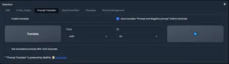 Allows to translate both positive and negative prompts from any language into English, both before generation and directly during generation.