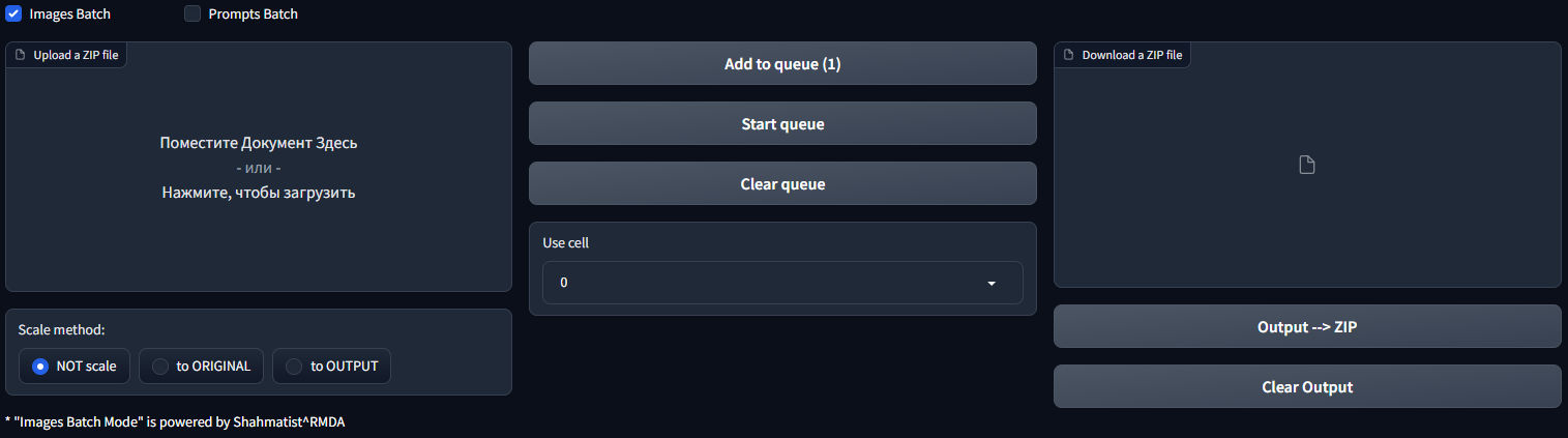 In a nutshell, this module allows you to upscale and create images based on existing images. To better understand this module, I advise you to do some experiments yourself. But I would like to note that its application allows you to use your images as references and change their style depending on the prompt and the selected model. First you need to create a zip-archive with your images. There should be no subfolders in the archive, file names should not use characters other than Latin. Upload the prepared archive to the Upload a zip file window. Next, you should choose the mode of changing the resolution of images