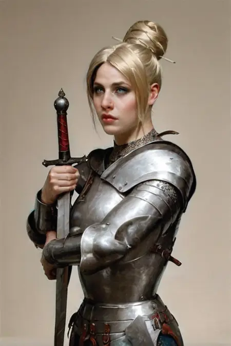 ミラノ式アーマーは、ゴシックスタイルのアーマーに次いで、私が最も好きな中世ヨーロッパのフルプレートアーマースタイルの一つです。このLoRAの訓練に使用されたデータセットには、有名なアバン・アーマーが含まれており、アーメットの代わりにバーブートを生成することが可能です。