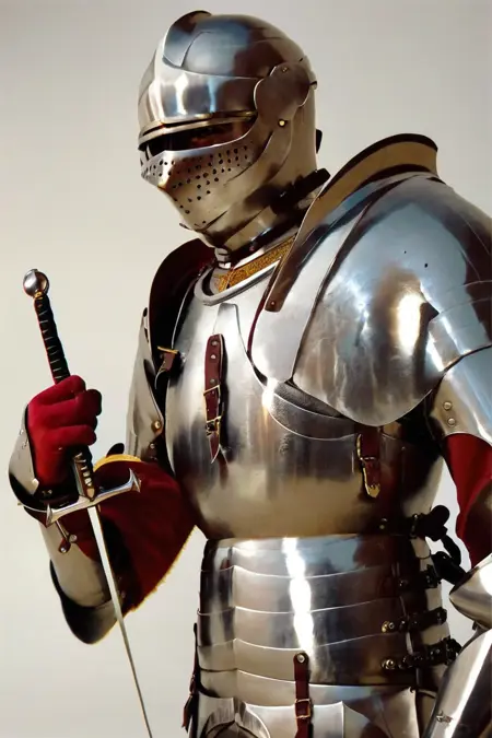The milanese armor is the second of my most favorite medieval european full plate armor styles, following the Gothic style armors. The datatset used to train this LoRA incoporated the famed Avant Armor, allowing the possibility of generating the barbute instead of the armet.