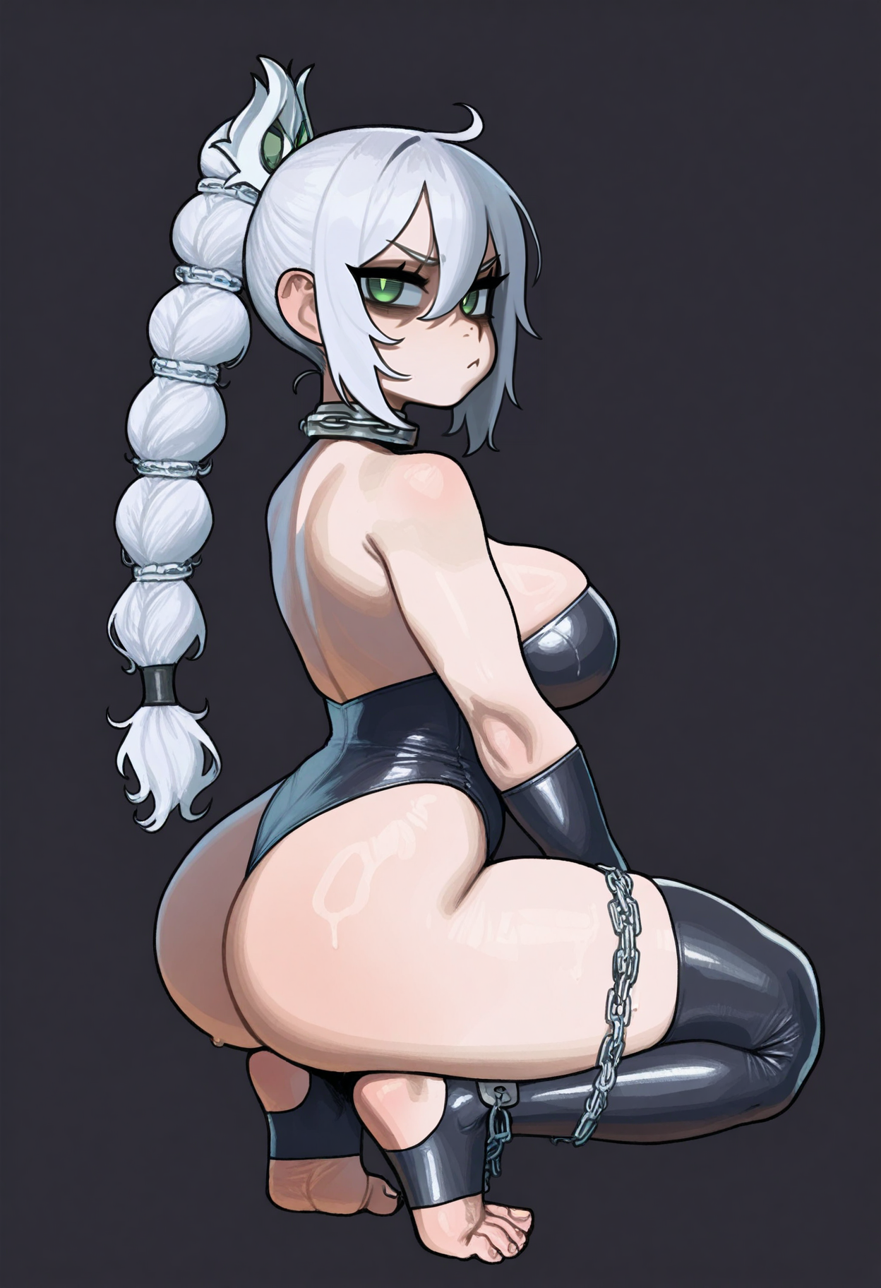 Selunite prompts : 1girl, selunite, white hair, long hair, braided ponytail, braid, green eyes, elf, pointy ears, armor