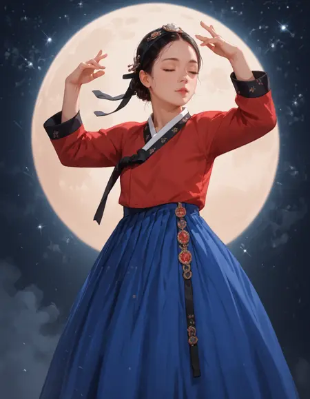 该模型经常在无提示的情况下生成发饰,且负面提示无法稳定解决此问题。模型无法可靠地区分당의(dangui)和치마 저고리(chima jeogori)风格。训练数据中的당의均为照片(并标记为“写实”),未来版本若加入“插画”风格,可能得到改善。