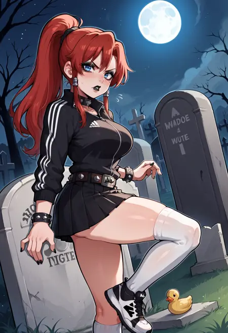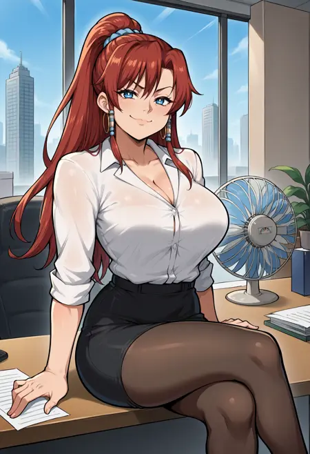忘れずに基本情報:大きな胸、長い髪、赤髪、青い目、ポニーテールを追加してください、