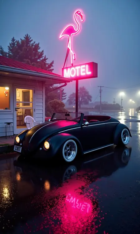 由于这款汽车的数据集非常有限,因此后视图效果不佳。然而,车头和车轮的效果非常好。车牌可以通过提示“车牌号码为[您的文字]”来生成。