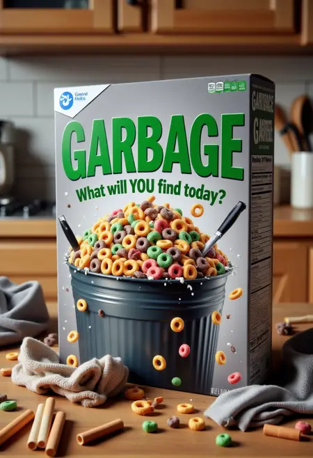这个盒子是“(主题)”麦片,一款模仿产品,设计上看起来里面装满了(主题)。