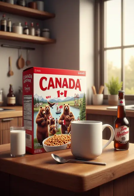 盒子和麦片的纹理细致逼真,增强了数字艺术的沉浸感。