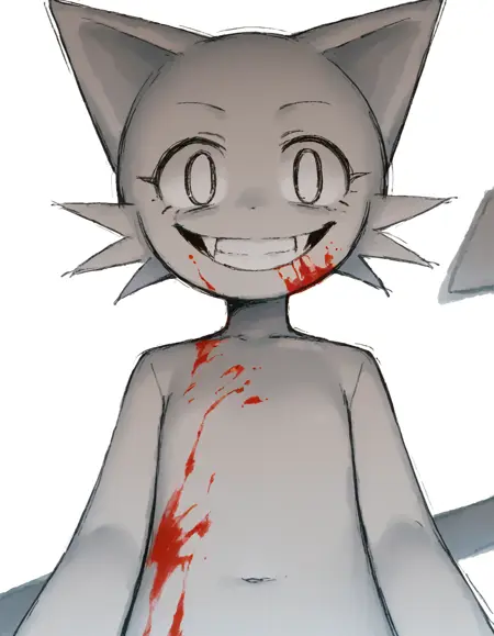 눈을 크게 뜬 모습, 피, 웃는 얼굴