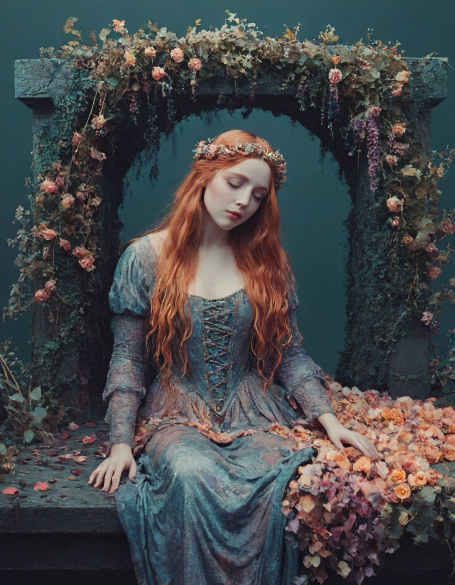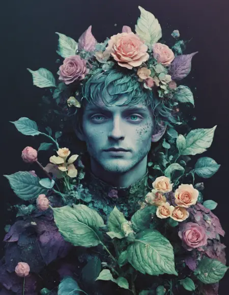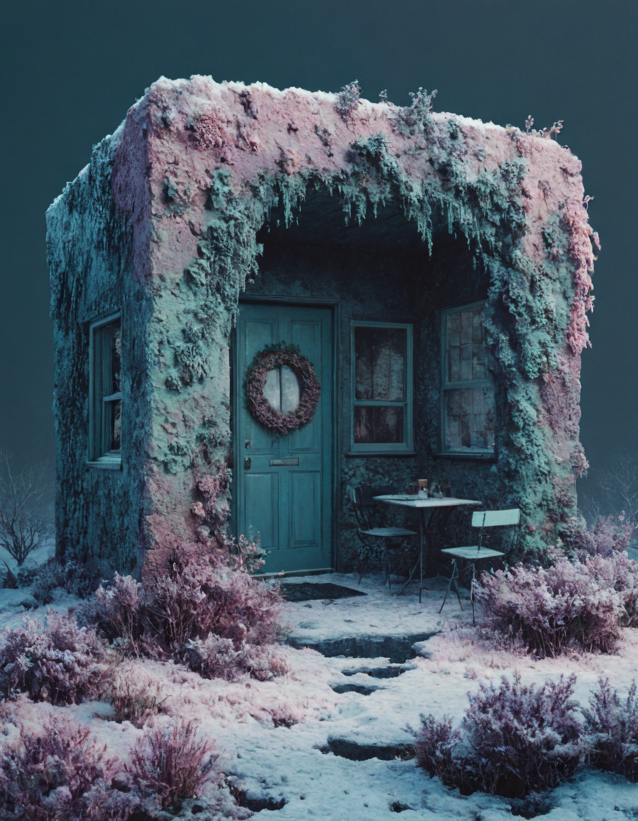 이 사진과 같은 사실적인 스타일은 피사체를 색색의 이끼, 꽃, 잎으로 덮습니다. 핵폭발 후의 폐허와 낙후된, 초현실적인 장면에 적합합니다. 보통 보라색, 파란색, 분홍색, 티올 색조의 팔레트와 부드러운 그라데이션 조명을 사용합니다.