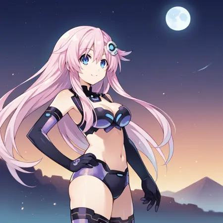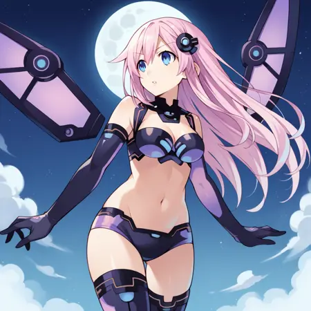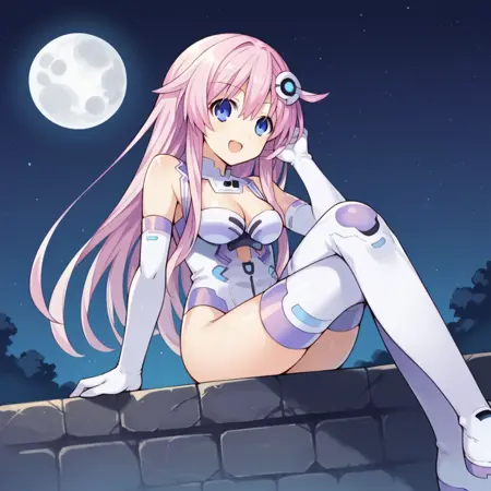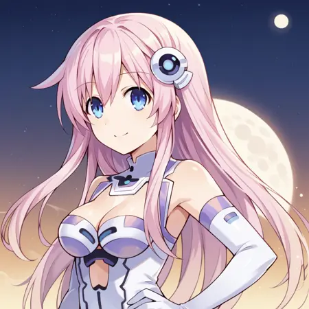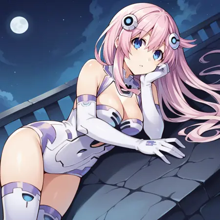 NpGr, Fol004, Np_Cpu, nepgear, 粉发, 蓝眼, 圆形发饰, 白色发饰, 白色紧身衣, 无袖高领紧身衣, 露胸开衩, 露肩, 裹腹, 服装开衩, 大腿靴, 白色腿部装具, 白色肘部手套, 替代紫色镶边,