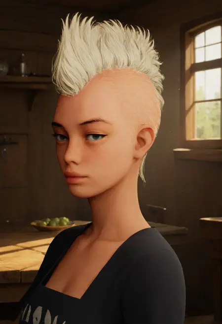 A female version from my first Meta Punk mode, still making some adjustments, works better using tags like mohawk, light skin,blonde,