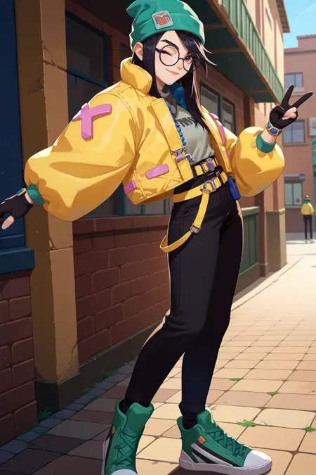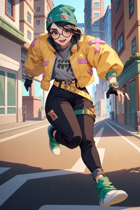 Valorant의 Killjoy. Pony Diffusion V6 XL에서 학습됨. 강도 0.8-1.0에서 테스트됨.