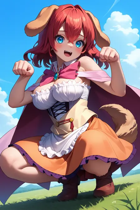Trigger word is "sdola" and "red hair, medium hair, blue eyes" is required.