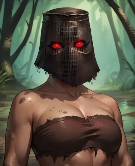 ・茶色のマスク、または茶色のヘルメット、顔が覆われている、または茶色で顔が覆われ、顔なしでも可。また、NEGに顔に関するプロンプトを入れるのも有効。