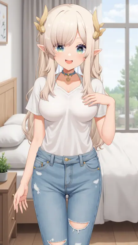 Base prompt: hina, bangs, smile, upper body, cream hair, hair ornaments, large breasts,