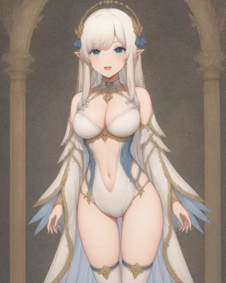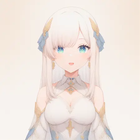 Base prompt: hina, 刘海, 微笑, 上半身, 奶油色头发, 头饰, 大乳房,