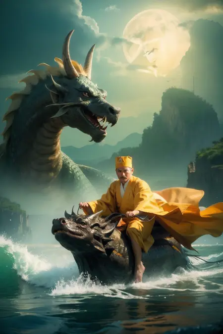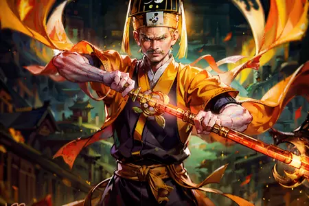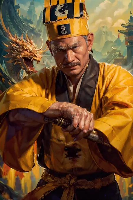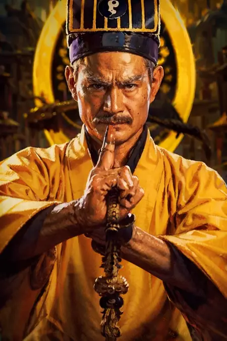 Optional Prompt(可選): 1boy, black_headwear, coat, robe, holding, fulu, sword, sword_finger
