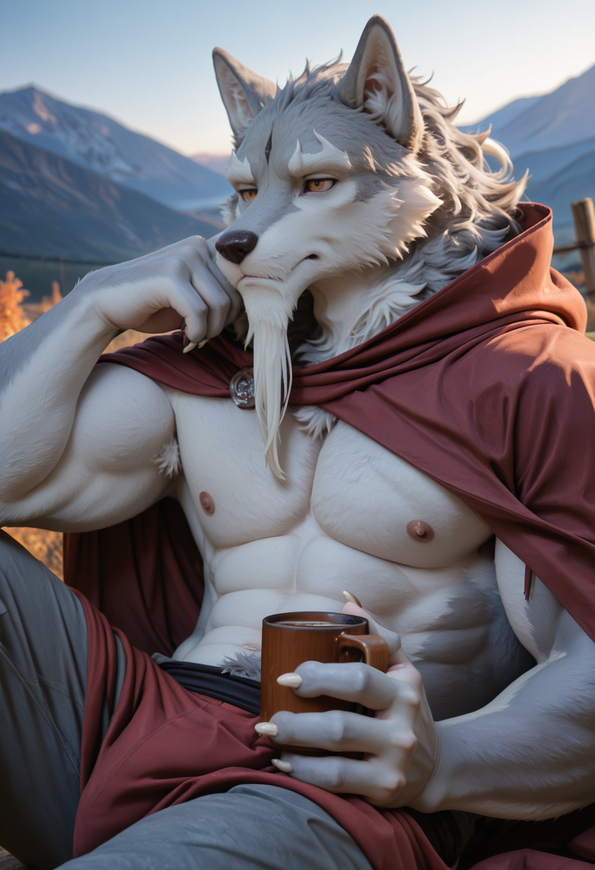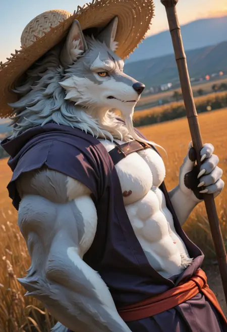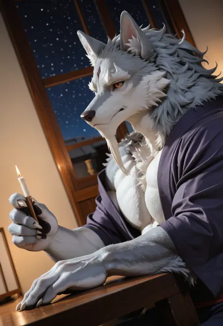 📝 Law — персонаж из мобильной RPG “Sdorica – Sunset”, представитель Восточного Альянса. Он — высокий, мускулистый антропоморфный волк с густым серебристо-белым мехом и пронизывающим взглядом. Его борода и грива подчёркивают зрелость и силу, а глаза светятся стальной решимостью. Обычно он носит традиционные восточные одежды — боевое кимоно и меховой плащ, сочетающие строгость и достоинство.