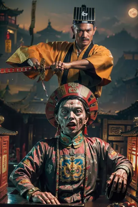 マジックミックス現実的v4モデルに基づいて、20種類の異なる512x768サイズの中国清朝殭屍(清朝殭屍)画像を用いてトレーニングされたLoRA。