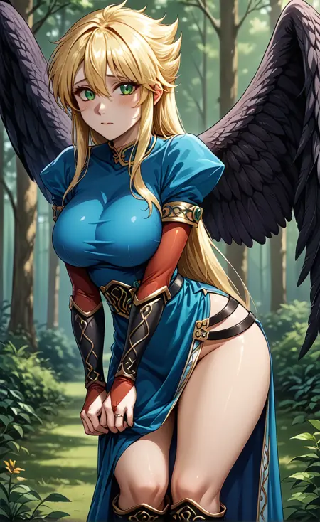 ((長い青いドレス、片側スリット、ふっくらした短い袖、大きなベルト、ブライダルガントレット)、袖、太もも、青いドレス、膝上ブーツ:1.2),