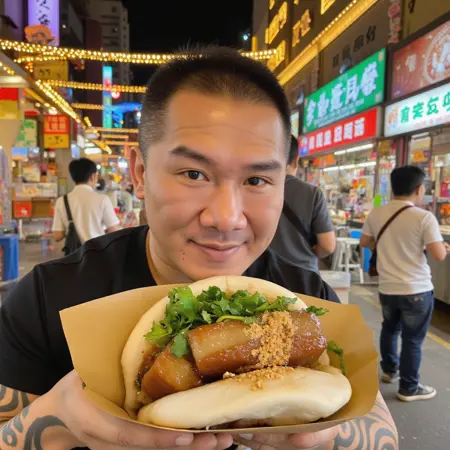 꽈바오 소개: 꽈바오는 대만 전통 스낵으로, 부드러운 찐 빵에 삶은 돼지 등심, 절인 겨자 채소, 간 땅콩, 신선한 코릴란더가 들어 있습니다. 부드럽고 육즙이 풍부한 돼지 고기, 촉촉한 빵, 달콤하고 진한 맛의 조합이 대만 야시장에서 인기 있는 요리입니다. 꽈바오는 풍부한 맛과 만족감 있는 식감으로 현지인과 관광객 모두에게 사랑받고 있습니다.