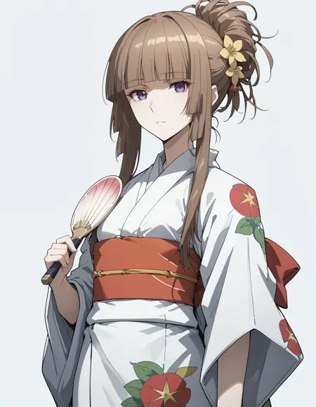 hair up,japanese clothes,kimono,yukata,hair ornament,hand fan || *prompt " long hair" can be remove if wanted