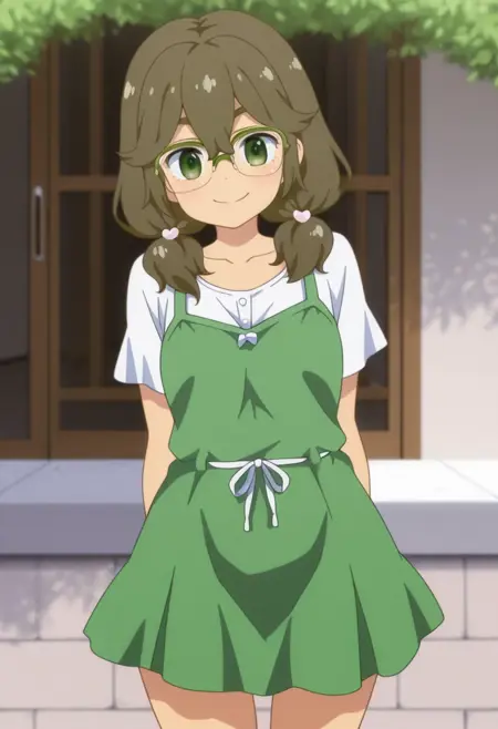Sakura Meifon, 높은 트윈테일, 녹색 눈, 갈색 머리, 트윈테일, 녹색 프레임 안경, 안경,