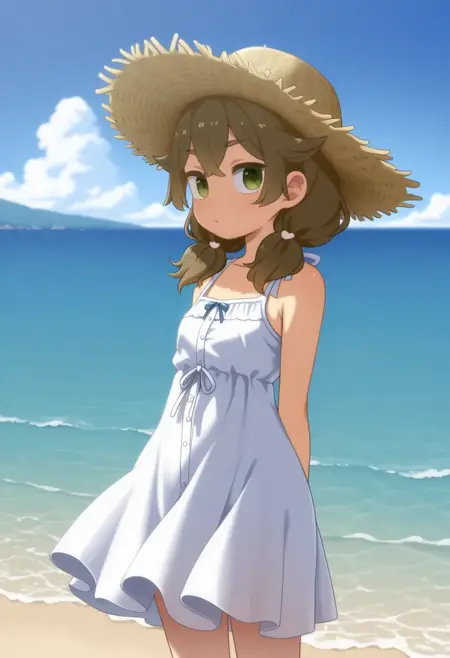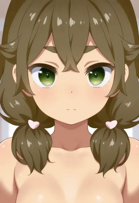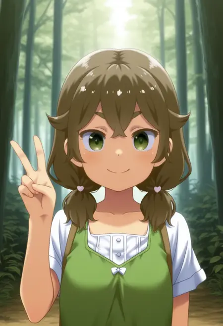 Sakura Meifon, 낮은 트윈테일, 녹색 눈, 갈색 머리, 카우보이 모자, 조끼,