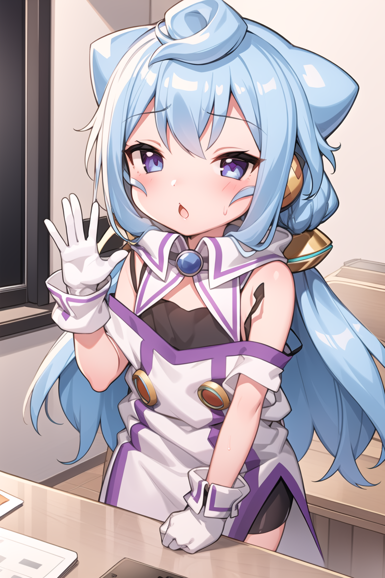 该角色的艺术作品在眼睛和头发颜色上存在大量不一致,如果这对你有影响,可以自行在提示中指定你想要的颜色。