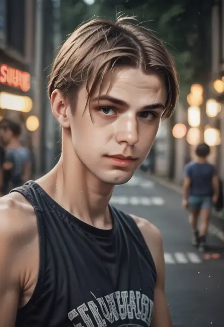 이것은 아름다운 베이스 모델 Lora인 젊은 남자입니다