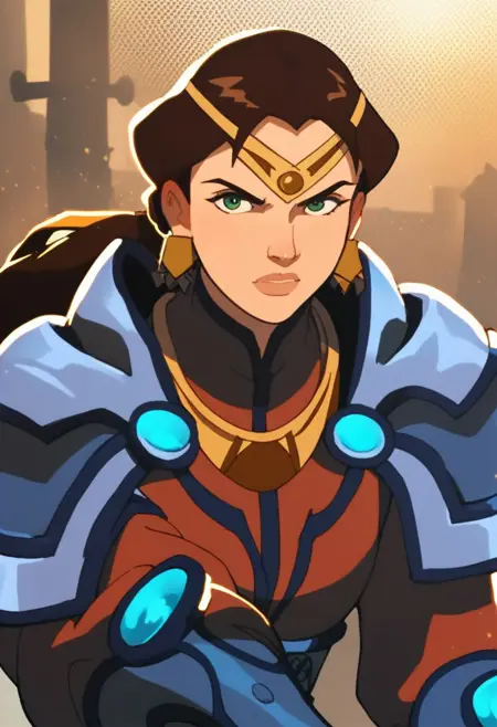 (不当に評価されていない)マスターズ・オブ・ザ・ユニバース2002のアニメシリーズにおける、戦闘装甲姿のクイーン・マレナ - NSFW生成は不可