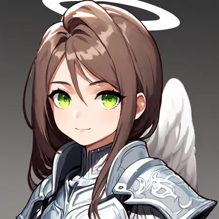 프롬프트 및 팁: Seren, 여성, 여자, 소녀, 밝은 피부, 올리브 눈, 녹색 눈, 갈색 머리, 긴 꼬리머리, 긴 머리, 천사 날개, 머리 위의 작은 천사 날개, 머리 주위의 빛나는 원, 홀로, 천상적, 갑옷, 부츠, 검은 스판덱스, 스판덱스, 두 개의 돌기 있는 홀로, 머리 주위의 두 개의 돌기 있는 빛나는 원, 검은 손가락 없는 장갑, 손가락 없는 장갑, 헬름, 헬멧, 날개 달린 헬름, 날개 달린 헬멧, 가슴판, 검, 검을 들고 있음
