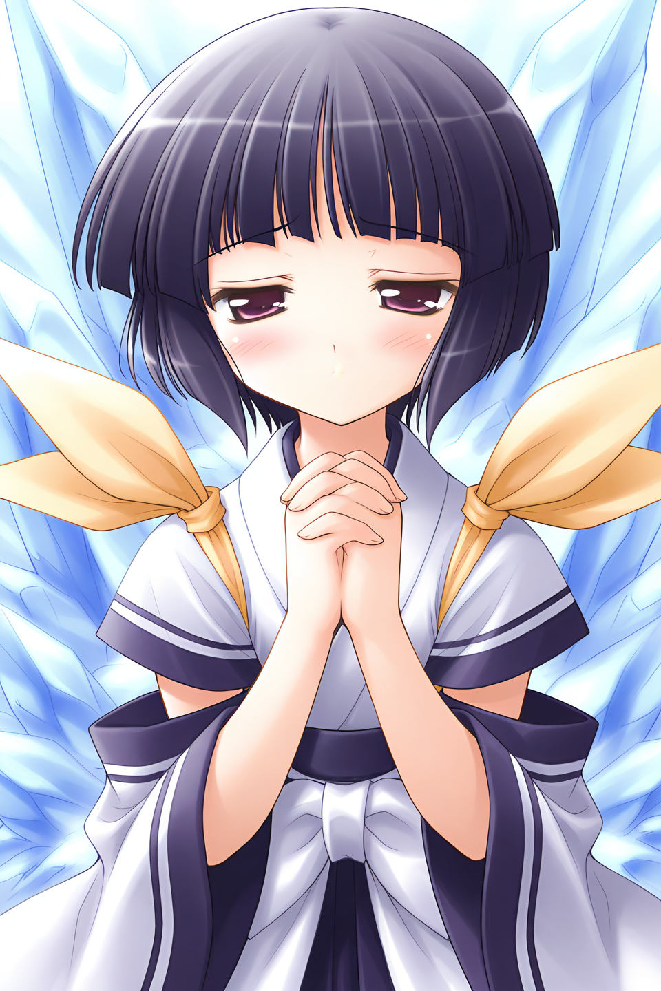 arisaka shiina,purple eyes,black hair,purple hair,short hair,bob cut,blunt bangs,