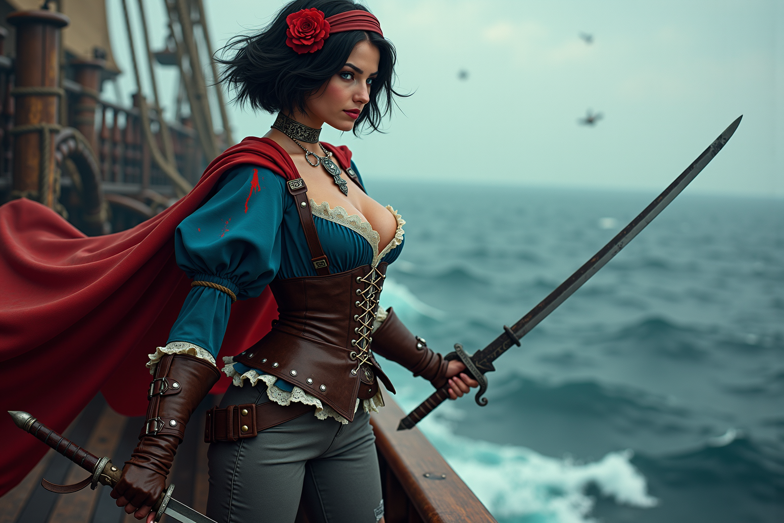 这些图像使用Flux生成,但经过Pony模型训练,该LoRa将生动呈现海盗船的每一个细节(包括你感兴趣的船底舱),画面中是这位性感的海盗版米纳娅。