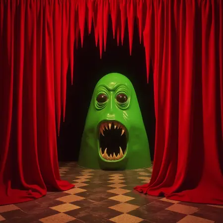 シュールで大胆な、シネマティックなレトロホラーの美的感覚。