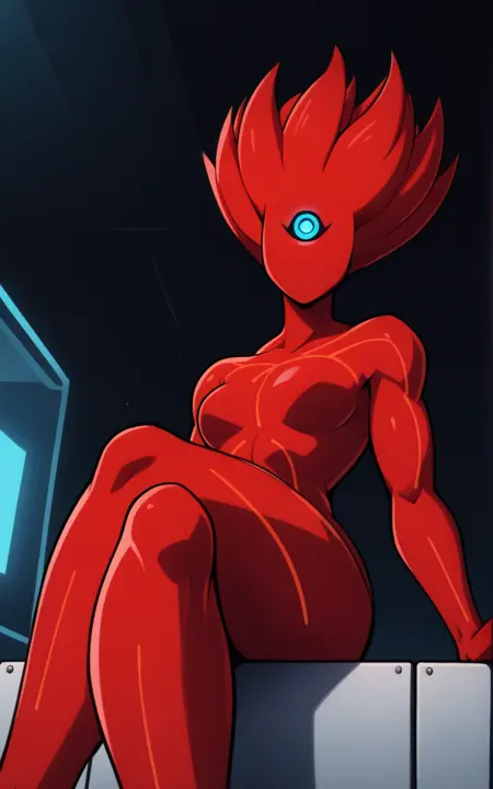 Reinforcement Tags: one-eyed,red skin,blue eye,glowing,barefoot**