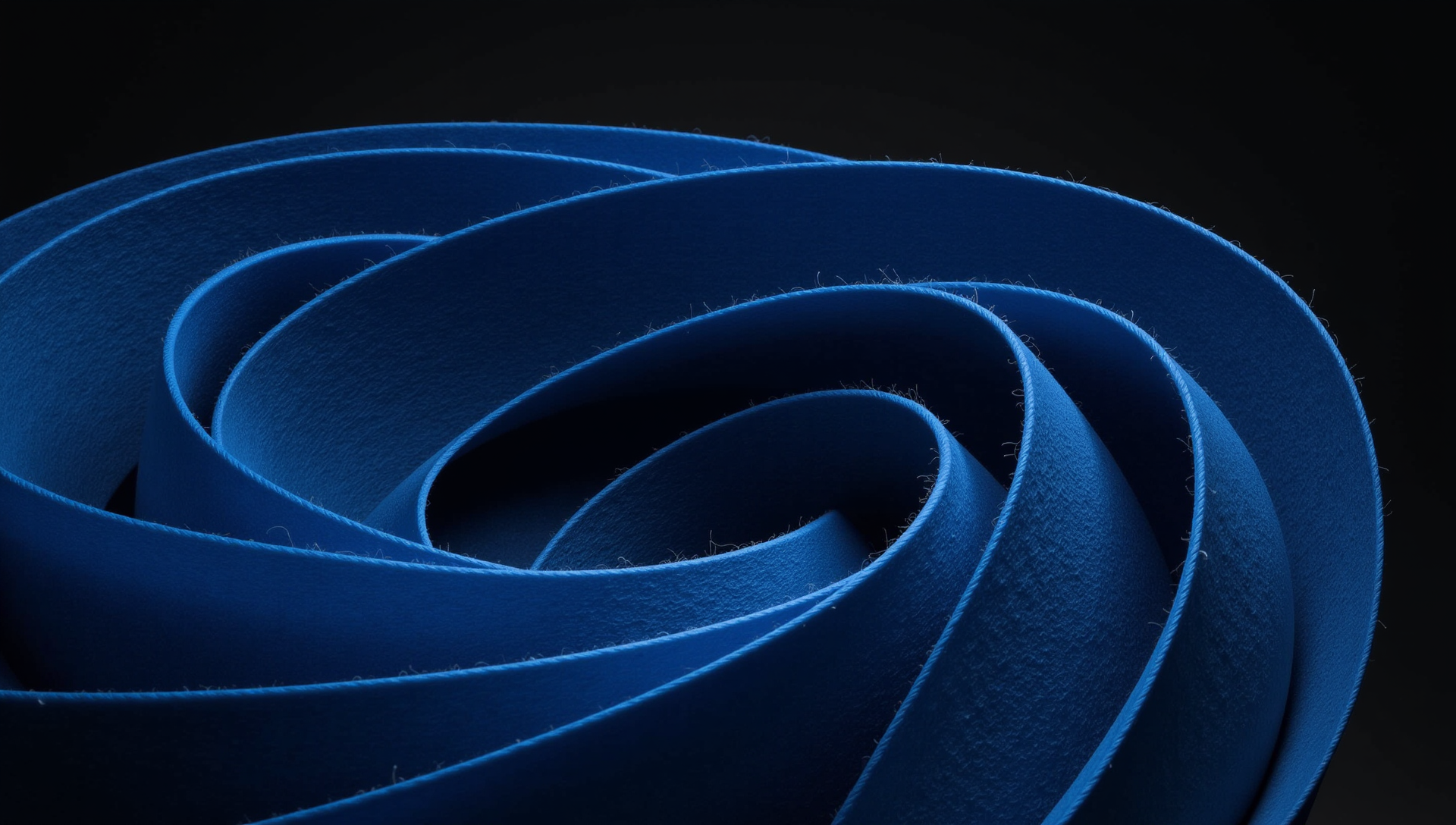 深灰色 w1n11wp,表面为呢绒布料,呈漩涡形状,背景为黑色。蓝色呢绒表面柔软、光滑、鲜艳、模糊,具有哑光质感,温暖且富有触感。